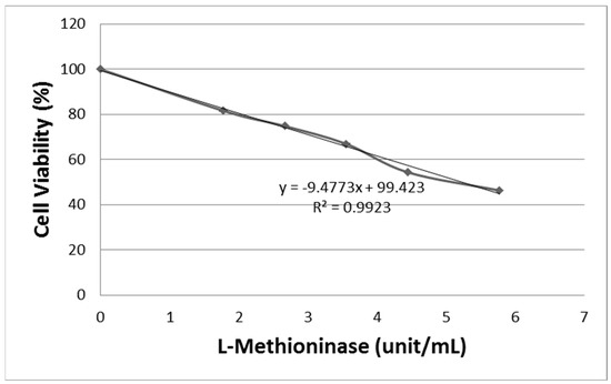 IC50 graph of L-methioninase on U87MG cell line (p < 0.001).