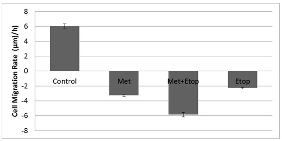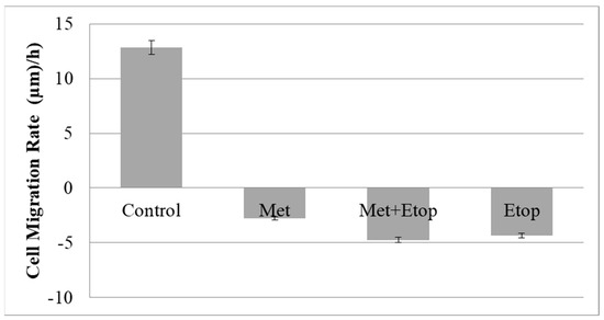 Cell migration rate over 24 h of incubation in U87MG cells.
