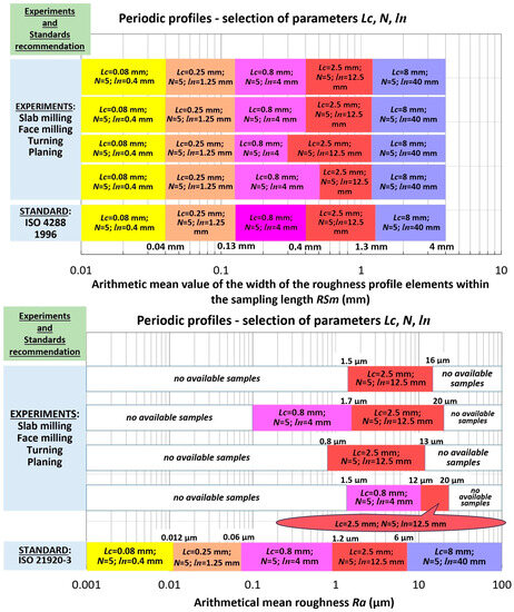 Profile curves are usually measured, and appropriate characteristics and quantities are evaluated from them, which are considered criteria for assessing surface roughness. Surface roughness parameters and values are defined in standards EN ISO 4287 and EN ISO 5436. These standards were later replaced by standards ISO 21920-1, ISO 21920-2, ISO 21920-3 [33,34,35,36,37,38,39,40].