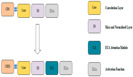The ECA attention mechanism is added after the BN layer of the CBS module.