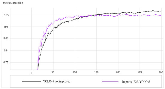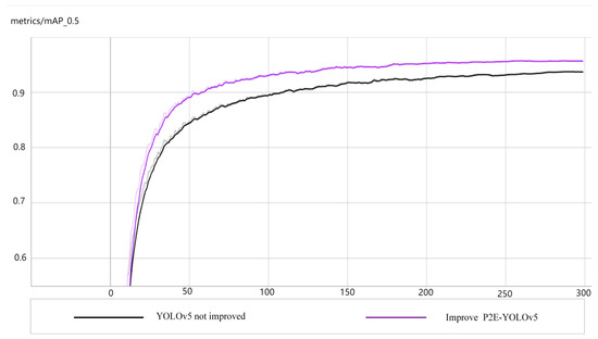 Subsequently, training experiments were conducted on the small-target data set of transmission lines, and the original YOLOv5 training results were compared with the improved P2E-YOLOv5 training results: