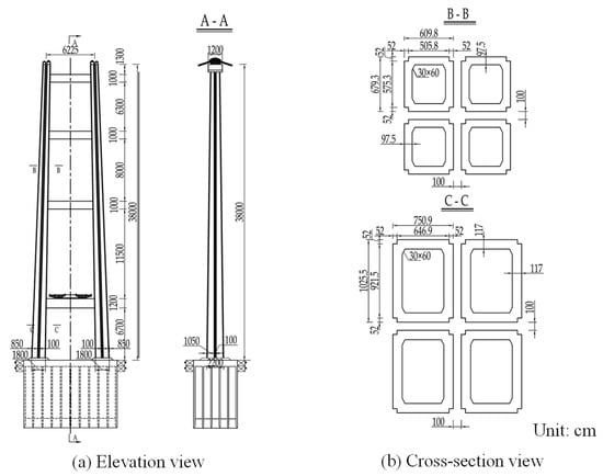In recent decades, long-span suspension bridges have been built all over the world; several are located in regions near fault-crossing sites [1]. The main tower columns of a super-long-span suspension bridge are much higher than those of long-span suspension bridges; thus, seismic control devices and measures are of greater importance for the safety of the former. In the traditional seismic design of bridges, structural components of the bridge are allowed to enter a nonlinear state to dissipate energy when exposed to strong earthquakes [2]. For the bridge tower of long-span suspension bridges, the traditional design view often treats each main tower column as one independent section component [3,4]. An independent tower column structure has good overall integrity and is simple to construct.