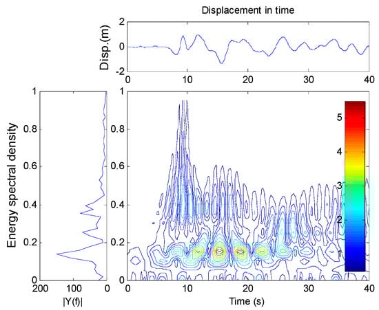 Time–frequency analysis of tower top displacement using El Centro earthquake data.