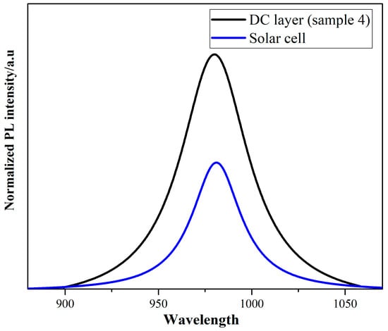 The normalized photoluminescence spectra of down-conversion layer and solar cell centered at 980 nm.