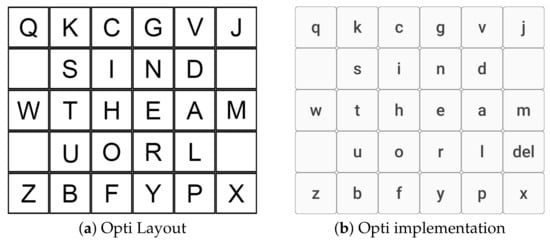 - Gkoumas, A.; Komninos, A.; Garofalakis, J. Usability of visibly adaptive smartphone keyboard layouts. In Proceedings of the 20th Pan-Hellenic Conference on Informatics, Patras, Greece, 10–12 November 2016; pp. 1–6. [Google Scholar]