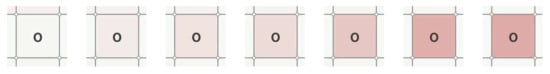 Figure 7 shows the color animation clue implementation of the prototype and Figure 8 shows single subfigures of the intermediate steps of the animation. The animation starts with alpha being zero and ends with the maximum value depending on the probability. This is the first half of the period. The figure does not show the second half when the alpha is decreasing again.