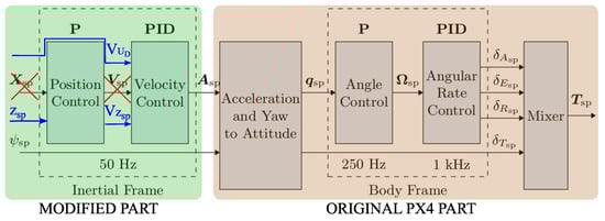 - PX4 Controller Diagrams. Available online: https://docs.px4.io/main/en/flight_stack/controller_diagrams.html (accessed on 29 May 2023).