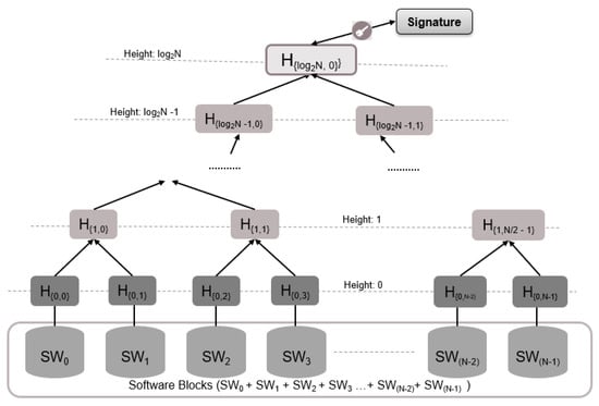 Our SOTA scheme is based on a Merkle tree approach [25,26]. We present a theoretical explanation and analysis for our approach, irrespective of the specific software use-cases employed. Figure 5 outlines the workflow at the backend repositories: