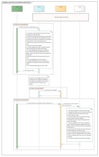 - Using the private key assigned to EcuX, the Merkle tree root is signed to create the signature of the software image.