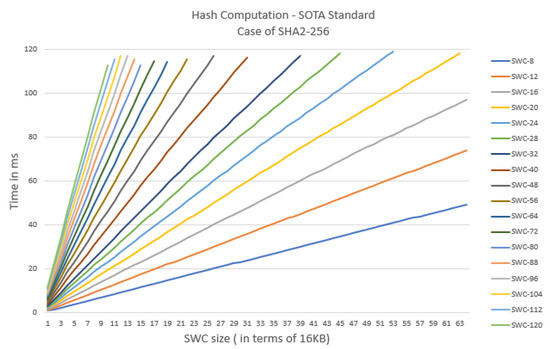 - A3: The hash function used is not breakable, meeting the requirements of preimage-resistant, second-preimage-resistant, and collision-resistant for a hash function [22]. In other words, for a hash value H(SW) calculated for a given image software SW, it is infeasible to find the software image SW (preimage-resistant feature). It is also infeasible to find another image SW’ such that Hash(SW) = Hash(SW’) and SW ≠ SW’ (second-preimage-resistant feature), as it is also infeasible to find any two images SW and SW’ such that Hash(SW) = Hash(SW’) and SW ≠ SW’.