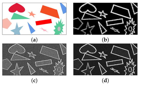 - Shui, P.; Zhang, W. Noise-robust edge detector combining isotropic and anisotropic Gaussian kernels. Pattern Recognit. 2012, 45, 806–820. [Google Scholar] [CrossRef]