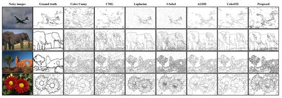 - Wang, F.; Shui, P. Noise-robust color edge detector using gradient matrix and anisotropic Gaussian directional derivative matrix. Pattern Recognit. 2016, 52, 346–357. [Google Scholar] [CrossRef]