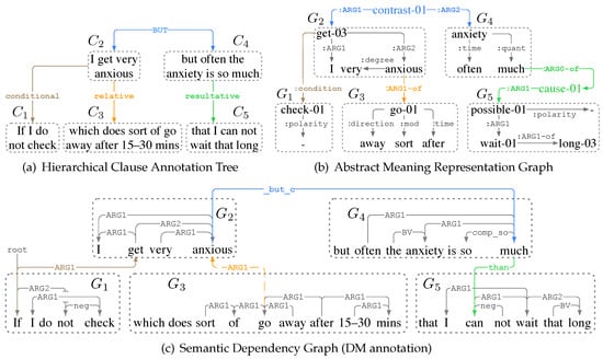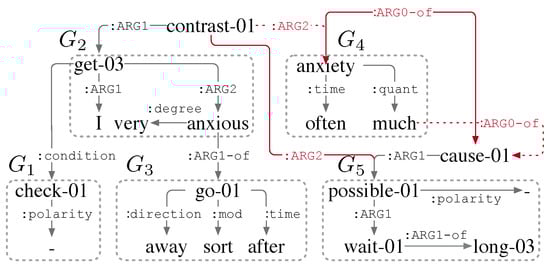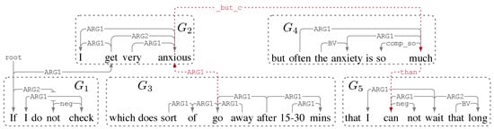 From the HCA tree given in Figure 1a, the clause “I get very anxious” mapping to the subgraph and the clause “but often the anxiety is so much” mapping to subgraph were coordinate and contrastive. Therefore, we provide a transformation rule: