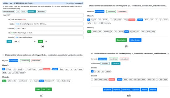 - Gessler, L.; Behzad, S.; Liu, Y.J.; Peng, S.; Zhu, Y.; Zeldes, A. DisCoDisCo at the DISRPT2021 Shared Task: A System for Discourse Segmentation, Classification, and Connective Detection. In Proceedings of the 2nd Shared Task on Discourse Relation Parsing and Treebanking (DISRPT 2021), Punta Cana, Dominican Republic, 11 November 2021; Association for Computational Linguistics: Stroudsburg, PA, USA, 2021; pp. 51–62. [Google Scholar] [CrossRef]