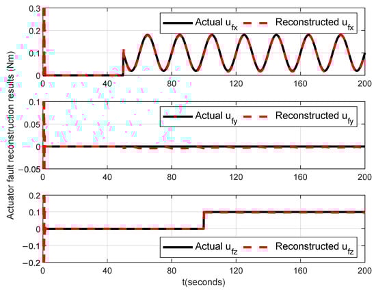 The reconstruction signals of actuator faults with the MLO designed using Theorem 1.