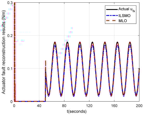 The reconstruction signals of actuator fault in the x axis under the MLO and the ILSMO [26].