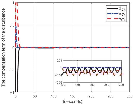 In the MLSM controller (29), the mixed learning algorithm is used to update and compensate for the jointed disturbance, including fault reconstruction error, inertia uncertainty, and space disturbance torque. Therefore, compared with the existing SMC approach [31], the proposed MLO-based MLSMC approach could achieve higher attitude stabilization accuracy under more computational sources resulting from the mixed learning algorithm. Compared with the adaptive SMC methods [15,16,36], the proposed MLSMC has a lower computational burden because the P-type learning algorithm has this advantage compared with adaptive learning algorithms [36] and adaptive neural network models [15,16].
