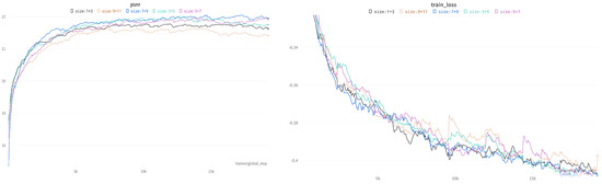We performed experiments with different sizes of convolutional kernels in the MLB and evaluated the performance on the same datasets. As shown in Table 5, the PSNR and SSIM showed an upward trend for our design as the convolutional kernel became larger. Such observations are consistent with our assumption that the receptive field increases as the convolutional kernel increases, capturing more contextual information. As the number of network parameters increases, the generalization ability also increases. The performance begins to saturate and decay when the convolutional kernel is further expanded. Therefore, we considered using kernels of sizes and as the backbone of the MLB. We also visualize the convergence speed and performance of different sizes of convolutional kernels during training in Figure 11. We can observe that: compared with other configurations, when the convolutional kernels were and , the convergence speed was faster, and the performance increase was stable, which shows that the MLB under this configuration can extract rich attention context features with cross-dimensional interactions to capture good detail information and restore degraded image details.
