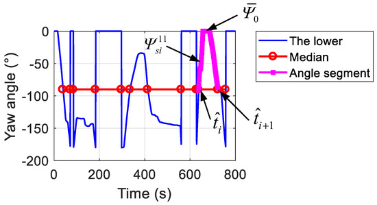where is the length of . Thus, is the number of effective zero-crossing or median-crossing marks in the yaw angle signal , as shown in Figure 3.