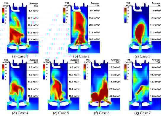 TKE in the PC of 7 cases at −9°CA during scavenging.