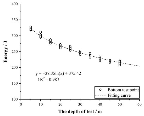 Figure 8 illustrates the fitting curve for the effective hammering energy of the probe rod with respect to the test depth, as shown in the following equation: