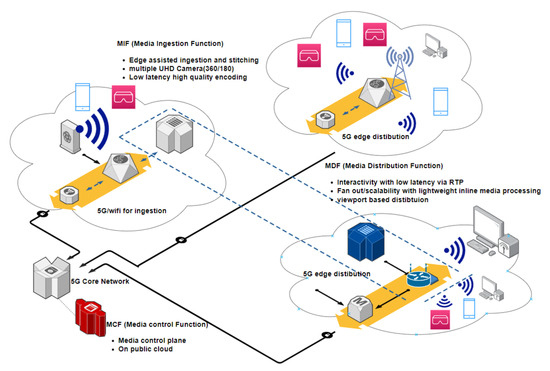 - Shen, G.; Dai, J.; Moustafa, H.; Zhai, L. 5g and edge computing enabling experience delivery network (xdn) for immersive media. In Proceedings of the 2021 IEEE 22nd International Conference on High Performance Switching and Routing (HPSR), Paris, France, 7–10 June 2021; pp. 1–7. [Google Scholar]