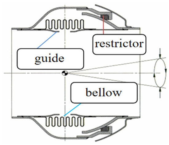 The ball joint is a metallic element used for thermal compensation and increased flexibility in air duct systems. As shown in Figure 7, the ball joint consists primarily of bellows, a guide, and a restrictor. Under the action of the bending moment, this component has lateral rotational freedom with a maximum deflection angle of 5°, no freedom of torsion, and flat motion.