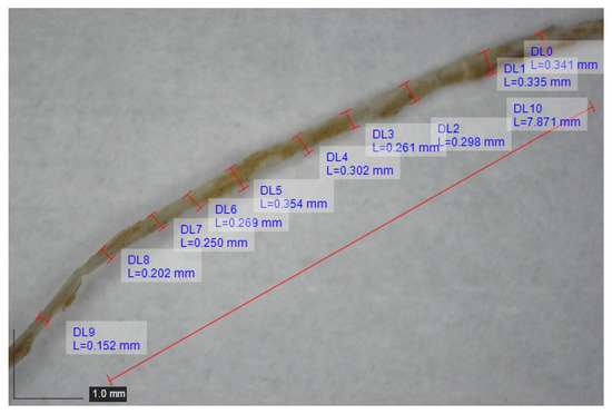 The total mass of submerged fiber was calculated. After submerging the samples, the dislodged volume was quantified using Equation (3) [41].