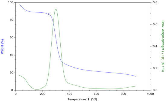 - ASTM E1131-20; Standard Test Method for Compositional Analysis by Thermogravimetry. ASTM International. Book of Standards. Volume 14.01. Available online: https://www.astm.org/e1131-20.html (accessed on 4 August 2023).