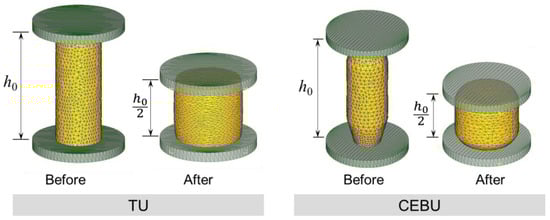 Schematic of the upsetting process. (a) TU; (b) CEBU.