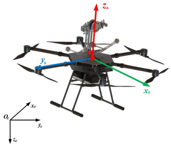 In this section, two right-handed frames are used [48]—inertial frame and body frame —where points in the same direction as gravity, as shown in Figure 10.