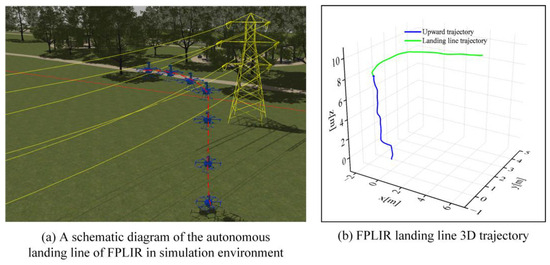 Then, a trajectory planning method based on geometric constraints is applied. These constraints are defined by the landing characteristics, the structural features of the FPLIR, and prior structural data. By determining the desired position, the method generates a collision-free and dynamically feasible trajectory to guide the FPLIR to a zero-speed landing on the power line.