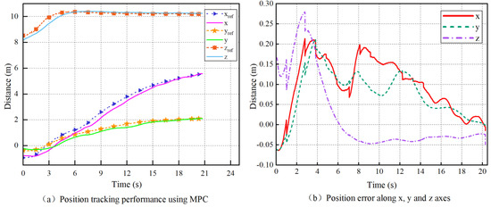 - MPC depends on a well-described system model to optimize system performance and ensure constraint satisfaction. Therefore, an accurate dynamics model is critical to the success of the control system. Since the FPLIR is not a standard multi-rotor UAV, there are inaccuracies in the dynamics model’s description of the FPLIR. If the speed of the FPLIR is too high, it will result in poor trajectory tracking.