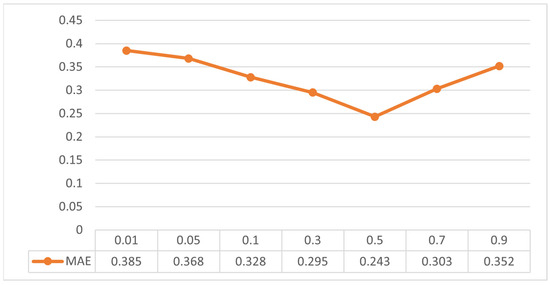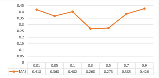 The experimental results show that the model can maintain good stability when different k values are used. When k is taken as 0.3, MiBeMC-RoBERTa achieved the best performance, with an MAE value of 0.268. When k is taken as 0.5, MiBeMC-DeBERTa achieved the best performance, with an MAE value of 0.243. However, the k value should not be too large (such as above 0.7), as a higher k value implies that randomness is too high, and model optimization will thus be more difficult. These results also prove that the potential gradient regularization of the R-AT strategy can make the model tend to optimize to a flatter minimum risk in order to improve the generalization ability.