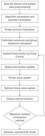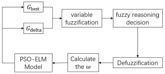 However, the weight matrix and the threshold matrix of the ELM neural network are randomly generated, resulting in a non-full rank of the hidden layer output matrix and reducing the prediction accuracy of the ELM model [31]. Particle swarm optimization (PSO) is a numerical optimization algorithm inspired by the foraging behavior of birds that can adjust the connection weights and thresholds. PSO algorithm is based on “information sharing”. It has the advantages of fast convergence, few parameters, and simple algorithm implementation. Consequently, in this paper, the fuzzy adaptive particle swarm optimization (PSO) algorithm is used to optimize the selection of the weight matrix and the threshold of ELM.
