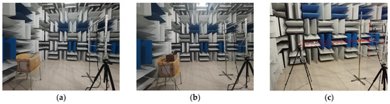 An experimental study is conducted to examine 2D-DOA sparse estimation by 2DTV-CES. The measurements were conducted in the semi-anechoic chamber (500 m3, cut-off frequency 20 Hz) at the Qingdao University of Technology, China, with a 16-channel 2D-random array of 1 m diameter. Its dimensions are 4 × 4 and the microphone spacing d was 8.5 cm. In this experiment, there were two different types of spatially extended sources. One type was a continuous source consisting of four monopole sources in Figure 6a, the other was a dipole source with two loudspeaker drivers closely driven in antiphase in Figure 6b. The two types of extended sources were driven by 2000 Hz acoustic signals and were oriented so that the sources’ plane is parallel to the array plane. The sources’ plane was located at cm and the microphone array at cm. According to the Nyquist sampling theorem, the sampling frequency of 4096 Hz was taken to obtain 10 s date records. Figure 6c depicts the 2D-DOA measurement metric in experimental procedure.