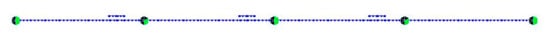 Commercial FE software, Midas Civil 2020, was utilized to perform a simulation and analysis of the construction process for hoisting installation. Here, the steel box girders were modeled using 3D beam elements and meshed based on the positions of diaphragms and supports along the longitudinal direction of the bridge. The entire model comprised a total of 207 elements and 252 nodes. Certain construction details, such as diaphragms, lifting points, and temporary facilities, were simplified and treated as concentrated loads to assess their respective impacts. Layout of the model elements and standard cross-section are shown in Figure 3 and Figure 4, respectively.