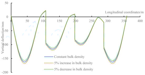 Vertical deflection change of integrated steel box girder caused by bulk density.
