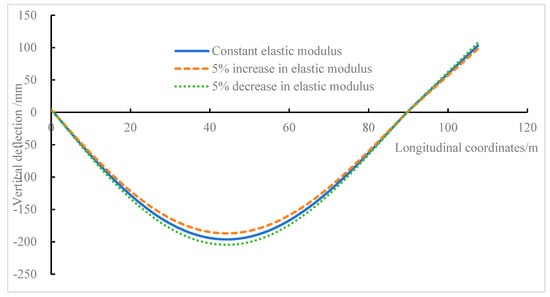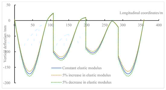 Vertical deflection variation of integrated steel box girder caused by elastic modulus.