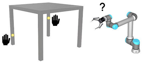 Now, grasp planning tries to solve for the pose and motion of robots knowing the geometry of objects, in order to find a feasible grasp [14,15,16,17]. Many HRC-related articles discuss this situation. For instance, in [18], the robot behaves as a deliverer to the human, considering comfort and stability. On the other hand, in [19], they propose an algorithm that allows the robot to know the human worker’s hand position using 3D sensors, hence finding a constant and safe boundary feedback for the assembly task.