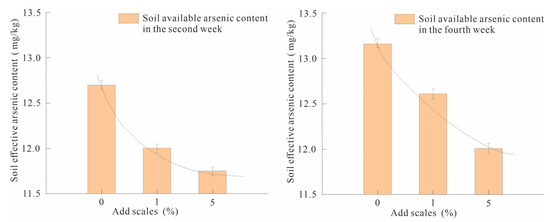 Comparison of soil available arsenic content in the second week and the fourth week under different addition ratios.