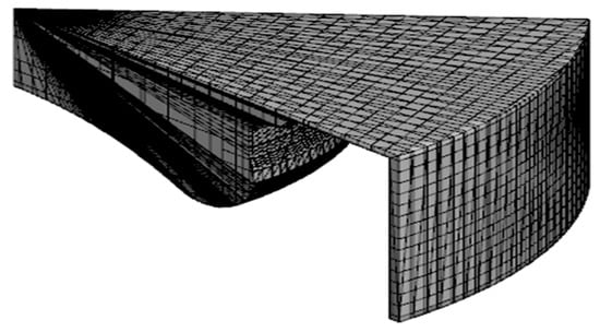 A 45° sector mesh was selected to reduce the computational cost. The base mesh was set as 4 mm. Additionally, an adaptive mesh refinement (AMR) algorithm was adopted to locally refine the meshing. The combustion chamber computational mesh at the top dead center (TDC) is depicted in Figure 1.