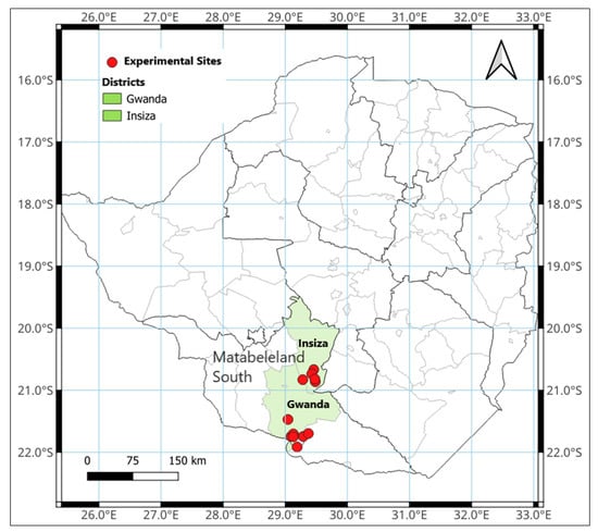 Agro-ecological regions of Zimbabwe and location of experimental sites in Insiza and Gwanda districts of Matabeleland South province. Adapted from [].