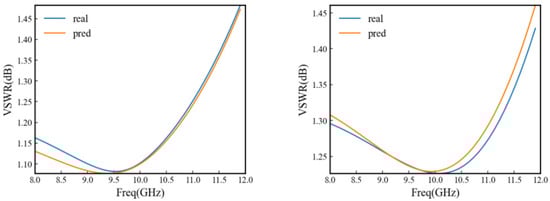 Schematic diagram of VSWR neural network prediction results, they should be listed as: (left) The result of the first random draw. (right) The result of the second random selection.