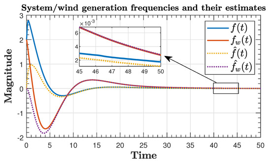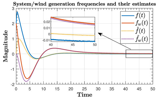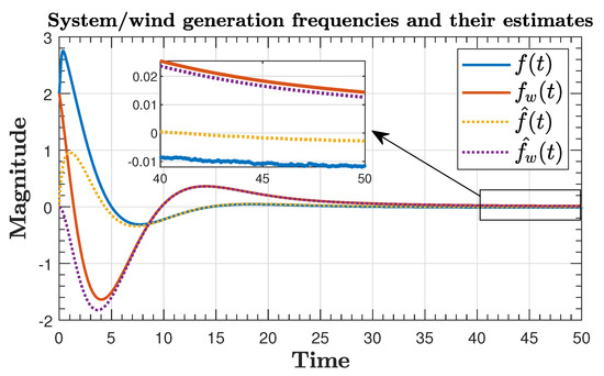 which implies that only the system frequency and wind generation frequency can be measured. The plant (29) is stabilized by the following observer-based controller