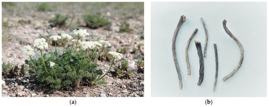 - Markova, L.P.; Belenovskaya, L.M.; Nadezhina, T.P.; Sinitsky, V.S.; Ligaa, W.; Sokolov, P.D.; Bakina, L.A. Wild Useful Plants of the Mongolian People’s Republic Flora, 1st ed.; Nauka Publishing House: Leningrad, Russia, 1985; pp. 204–208. [Google Scholar]