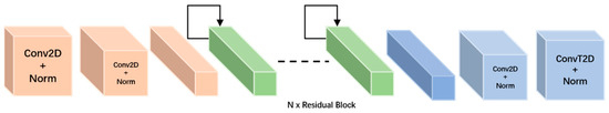 Figure 5. The network consists of down-sampling layers, residual layers, and up-sampling layers, forming a symmetric encoder–decoder structure. Four grasping detection heads are naturally integrated into the end of the network, generating pixel-wise grasp predictions, outputting the grasp quality feature map