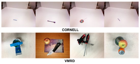 21], to validate the model. The VMRD, consisting of 5185 images containing 17,688 object instances from 31 object categories, provides 51,530 manipulation relationship labels in total. Some examples of the datasets are in