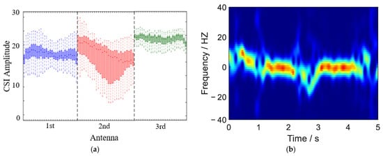 CSI signal and Doppler shift: (a) Antenna selection; (b) Spectrogram of Doppler.