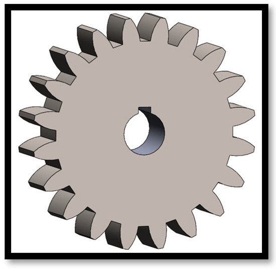 Figure 5 depicts the pinion gear utilized in the design. Additionally, a keyhole was incorporated into the gear design to allow for the insertion of the key between the gear and the motor shaft.